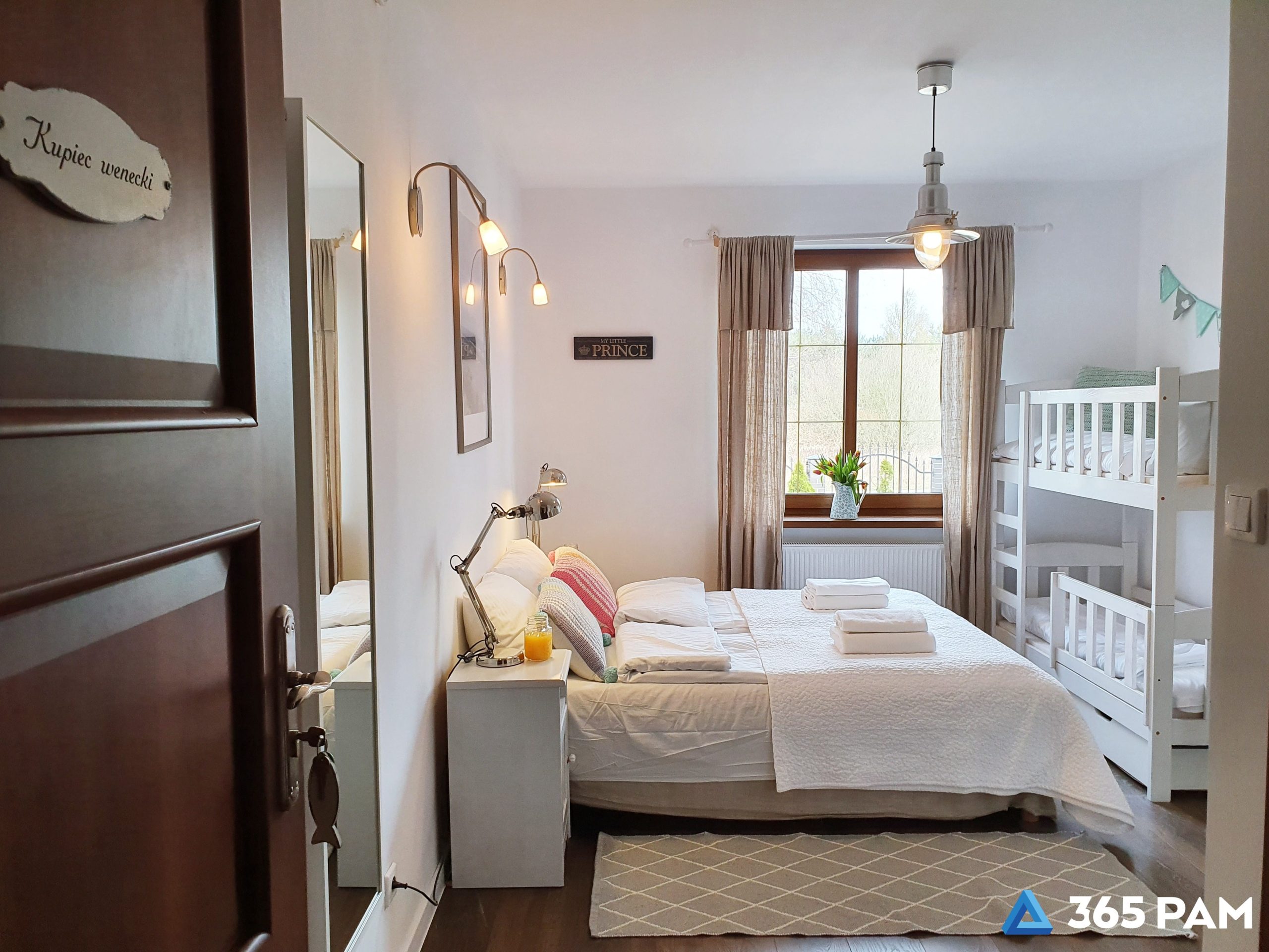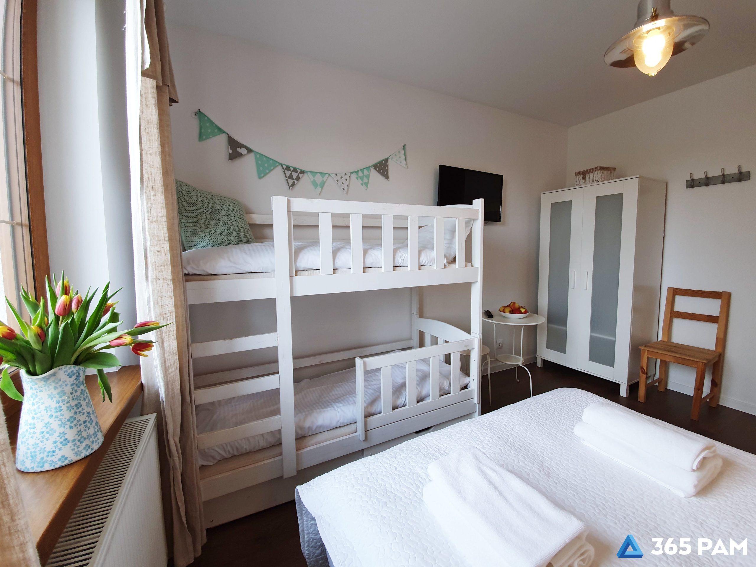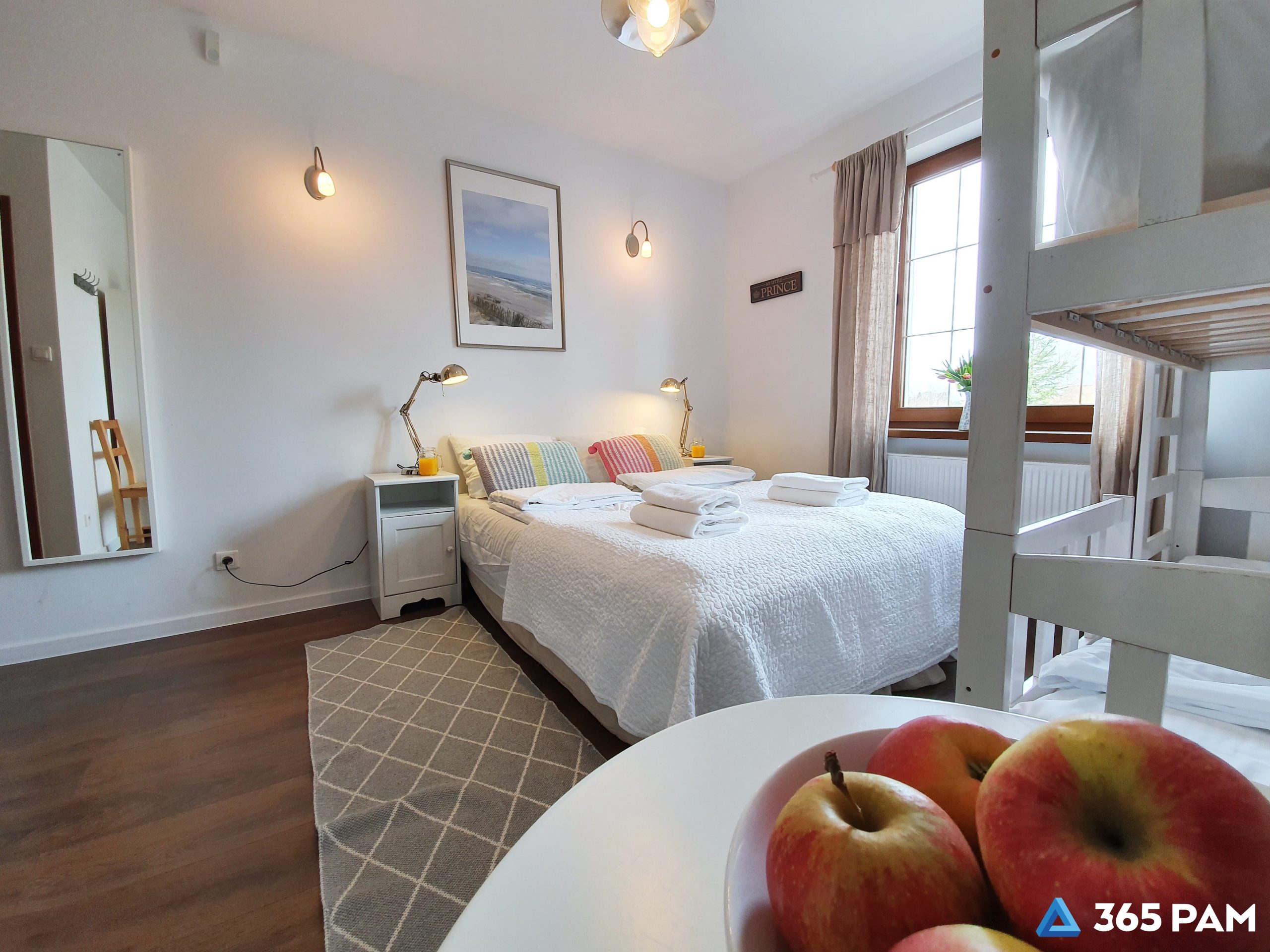 łóżko podwójne, łóżko piętrowe, część wypoczynkowa, prywatna łazienka