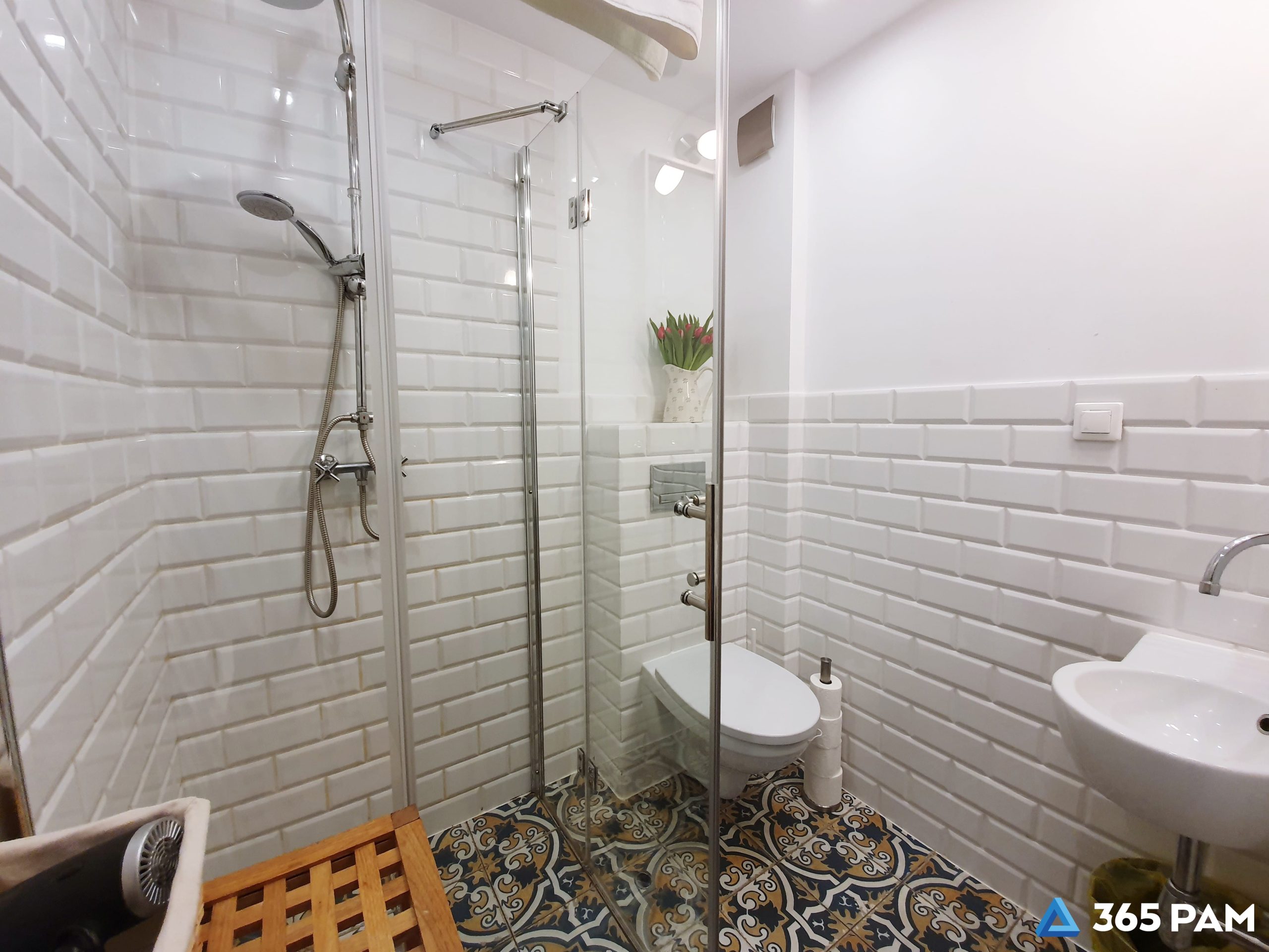 kabina prysznicowa, umywalka, WC, suszarka do włosów