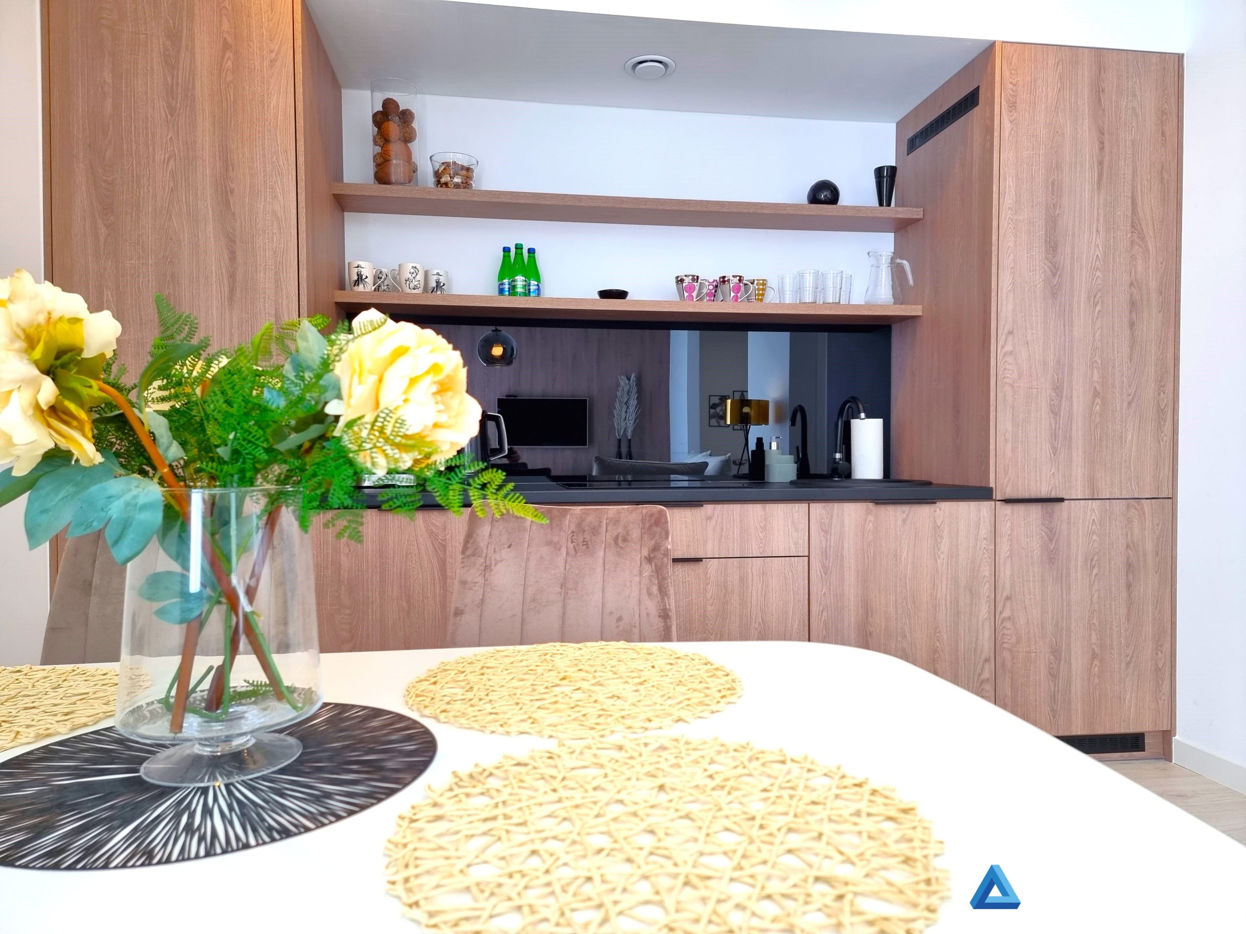 W mieszkaniu znajduje się salon z aneksem kuchennym.