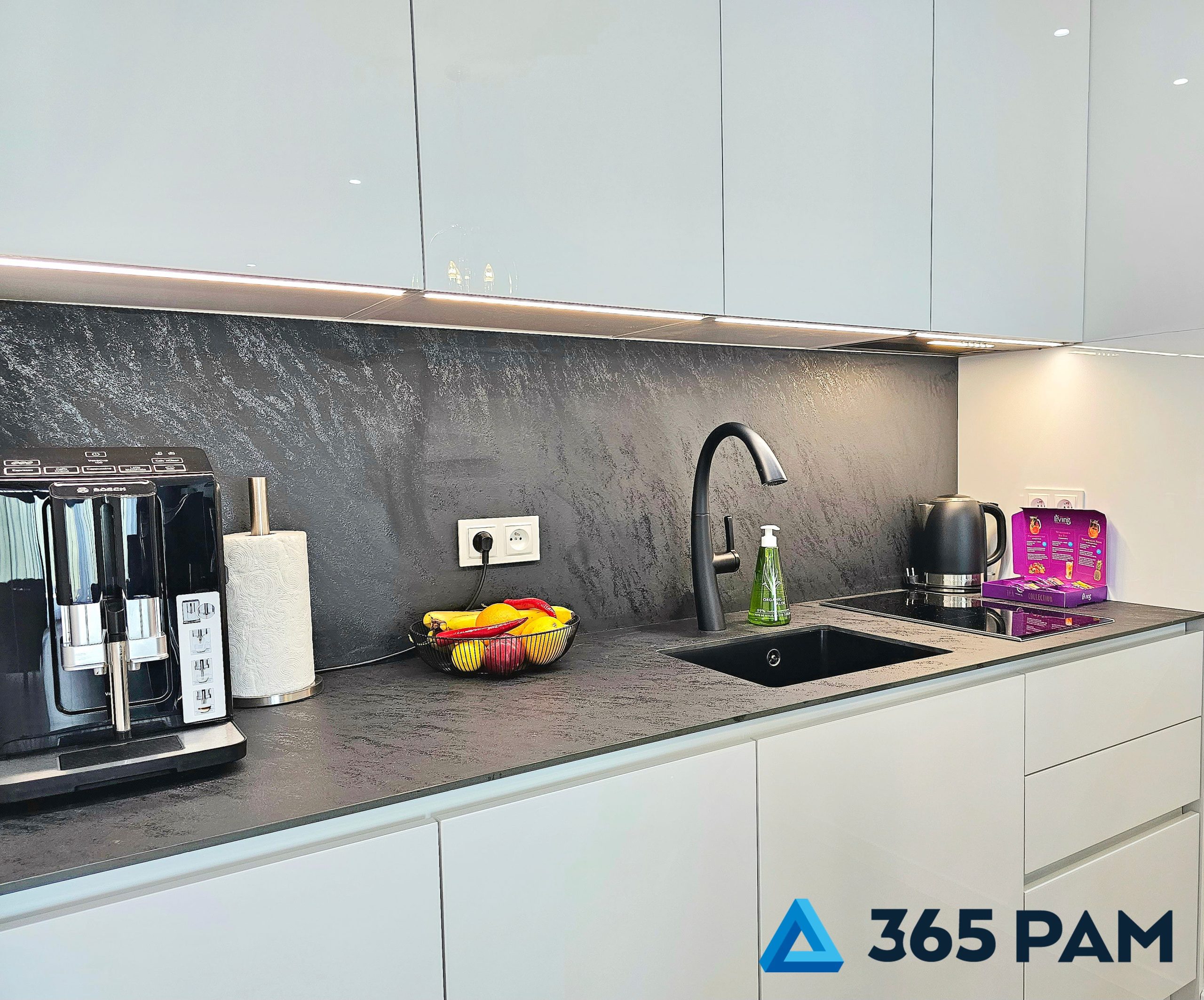 piekarnik z funkcją mikrofali, płyta indukcyjna, zmywarka, lodówka, ekspres do kawy, przybory kuchenne, zastawa stołowa