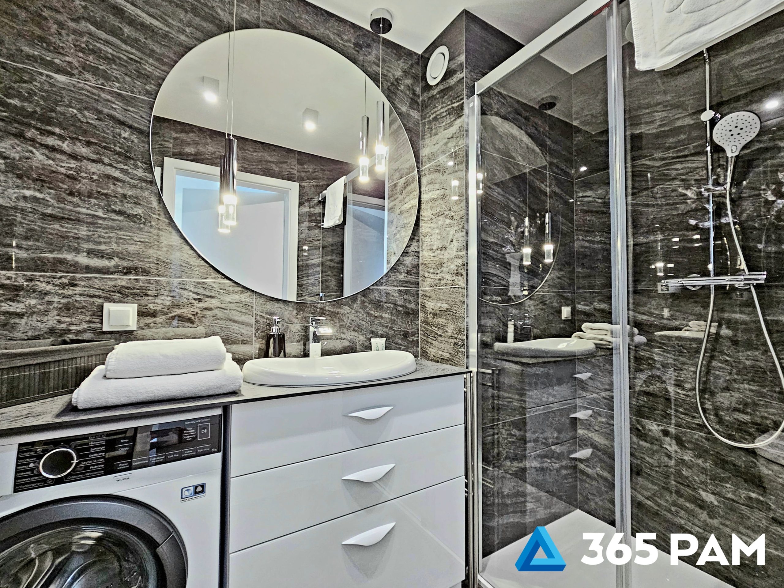 kabina prysznicowa, umywalka, WC, pralka