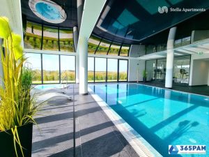 Dla gości dostępna jest strefa relaksu z krytym basenem, jacuzzi i siłownią, które czynne są codziennie od rana do wieczora, a także sauna działająca w godzinach popołudniowych. Na zewnątrz znajduje się plac zabaw dla dzieci. Okolica sprzyja aktywnemu wypoczynkowi, oferując doskonałe warunki do wycieczek rowerowych oraz nordic walkingu.