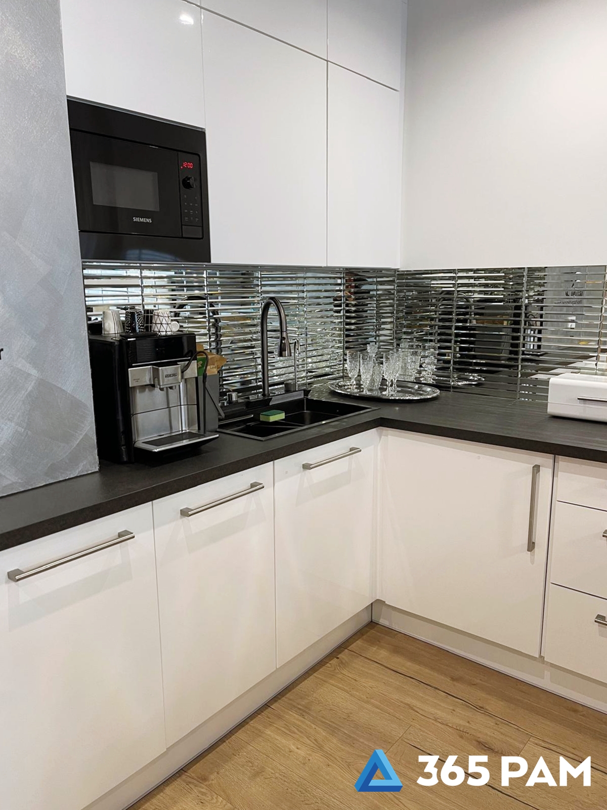 kuchenka mikrofalowa, płyta elektryczna, zmywarka, lodówka, ekspres do kawy, czajnik, przybory kuchenne, zastawa stołowa, pralka