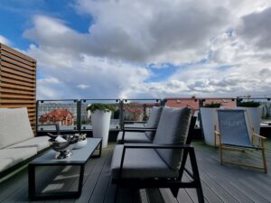 Obiekt Penthouse Sailor 28 – 365PAM znajduje się w malowniczym Ustroniu Morskim i jest usytuowany bezpośrednio przy plaży. Do wspólnej dyspozycji wszystkich gości apartamentów dostępny jest taras widokowy z pięknym widokiem na morze. W dwupoziomowym apartamencie znajduje się sypialnia na piętrze z przyległą toaletą z prysznicem, przestronny salon z rozkładaną kanapą oraz narożnikiem na parterze, łazienka z prysznicem, jadalnia oraz doskonale wyposażony aneks kuchenny. W przestrzeni kuchennej znajda Państwo miedzy innymi blender, mikser oraz ekspres do kawy. Apartament jest nowoczesny, przytulny i klimatyzowany, a telewizor z płaskim ekranem oraz dostęp do kanałów satelitarnych i bezpłatne Wi-Fi zapewni rozrywkę w pochmurne dni.
